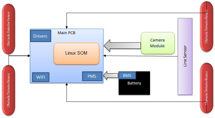 A 4 wheel robot is built to move both in manual mode and also to follow a line under the production line to capture images and videos. This will be updated to the server using a Linux platform SOM. It is used to find the location of the issue and report the same.